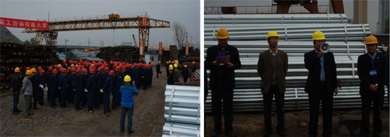 為落實(shí)集團(tuán)總公司《2014年安全生產(chǎn)工作要點(diǎn)》,豐富物產(chǎn)配送公司基層班組建設(shè),促進(jìn)一線職工綜合技能水平提升,以《吊裝作業(yè)規(guī)范手勢(shì)》為標(biāo)準(zhǔn),檢驗(yàn)公司一線司吊作業(yè)人員執(zhí)行國家規(guī)范手勢(shì)、司吊作業(yè)操作規(guī)程的實(shí)際效果,保證全年安全控制目標(biāo)的實(shí)現(xiàn)。物產(chǎn)配送公司在前期宣傳動(dòng)員、學(xué)習(xí)培訓(xùn)、實(shí)戰(zhàn)演練的基礎(chǔ)上,于2014年5月17日上午,舉行職工勞動(dòng)技能比武大賽。集團(tuán)總公司黨委書記白家林、集團(tuán)黨群工作部部長趙宗青、安全環(huán)保部干事劉軍蒞臨現(xiàn)場(chǎng)指導(dǎo)。
