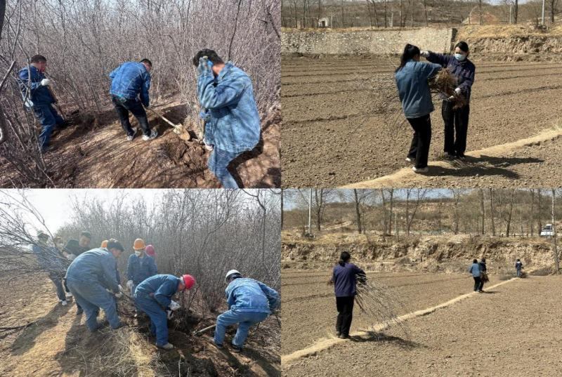 活動前期,公司領(lǐng)導(dǎo)班子成員根據(jù)物產(chǎn)北川工業(yè)物流園實際情況提前謀劃,多頻次與大通縣孫家寨村溝通,將該村“退林還田”亟待處置的桃樹和紫丁香樹等綠植資源整合接洽,并有規(guī)劃、有步驟地移栽回園區(qū)各處。